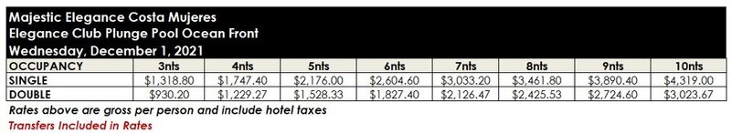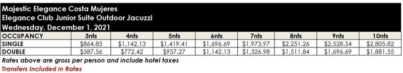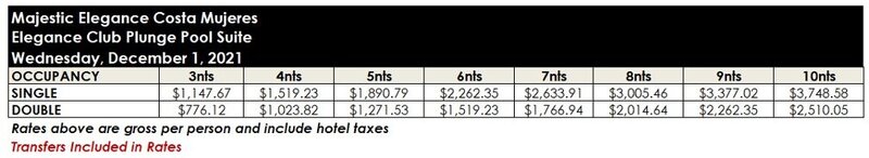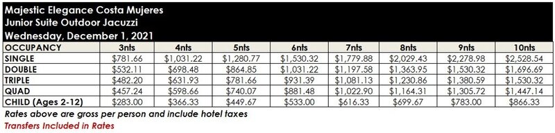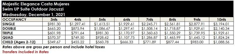ROOM RATES FOR MAJESTIC ELEGANCE COSTA MUJERES
